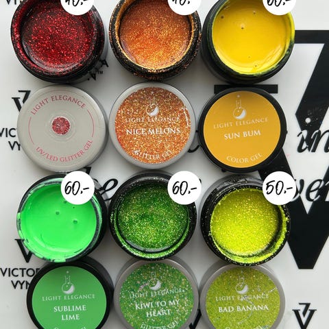 Roxy Glittergel i fargen silver. Produktet er en glittergel som kan brukes til dekorative formål.