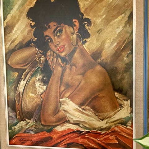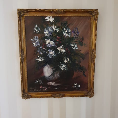 Veggur med seilskipsmotiv og gullramme
