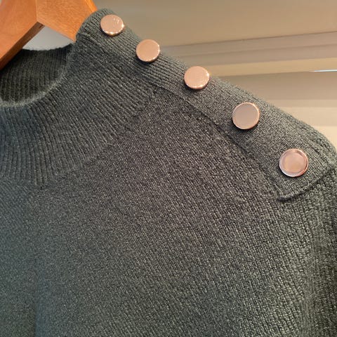 Keempe fin, Lindex høyhalset poncho i brun farge. Genseren har en one size størrelse og knappedetaljer på skulderen. Designet for kvinner.