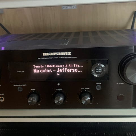 Marantz stereo forsterker. Bruksanvisning. 2 front, 2 bak og en midt høytaler samt subwoofer