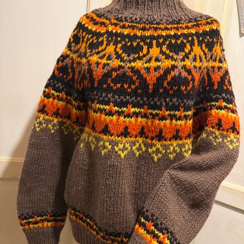 Villmarksgenser Alasuq polar holdes på å strikke no og selges. Kan sendes mot at kjøper betale frakt.