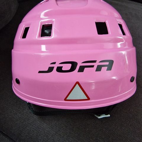 Jofa skøyter-hjelm i blå farge, størrelse 49-56. Hjelmen er for skøyte-lek og er ikke godkjent for aktiv hockeybruk.