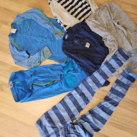Gensere i 116-122-128, bukse ca 116-128. Selges samlet