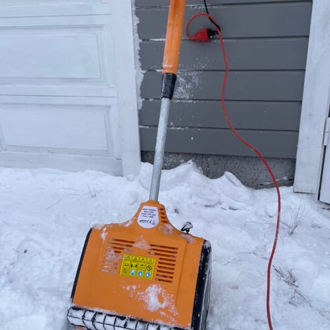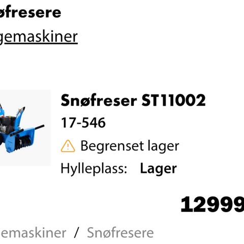Biltema snøfreser som starter på første draget. Har gått som en klokke i mitt eie. Alt fungerer bortsett fra lyset, usikker på om det er pæra eller noe annet. Den har også elektrisk starter som går på 220v. Nye slanger i dekkene i fjor.