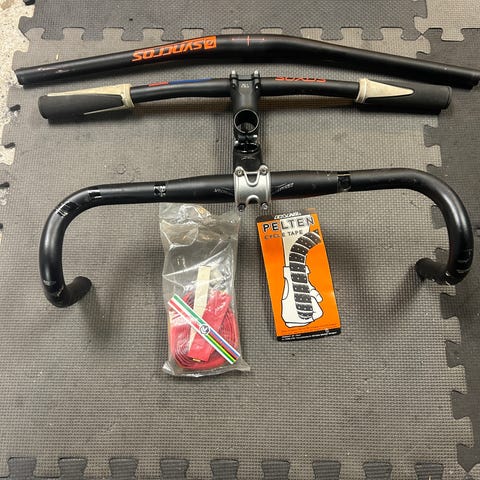 Qranken med armene er ubrukt, likt med 10 speed Ultegra cassetten. Brake padsene, Bremse vaier og de 3 skjedelåsene, 2 av kjedelåsene i en pk. KMC X1, alt dette er ubrukt.