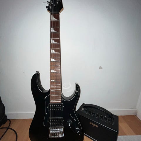 LA Elektrisk gitar Rød 10W med gitarforsterker og tilbehørspakke. Gitaren har et kroppsmateriale av paulownia, hals av lønn med gripebrett i poppel-laminat, samt 22 bånd og 25,5" halslengde. Utstyrt med 5-høyttalers øvingsforsterker med 10 watt effekt, 2-bånds EQ og kontakt for hodetelefoner. Inkluderer også stropp, gigbag og kabel. Passer for brukere fra ca. 11 år og oppover.