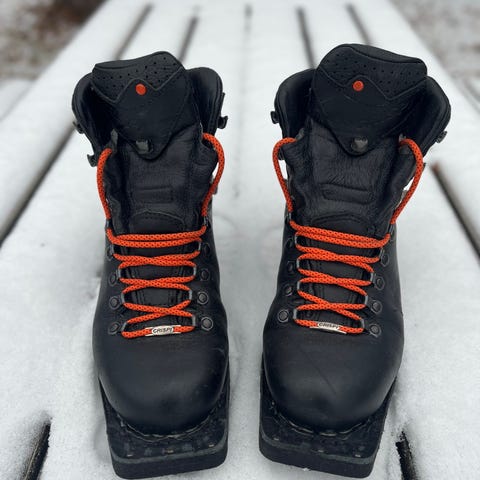 Fjellskistøvel fra Crispi med overdel laget i fullnarvet og vannavvisende lær med heldekkende kalosjering. Støvelen er fôret med Gore-Tex® Performance Comfort Footwear Lining holder deg tørr og varm. A.B.S.S. som er et spesielt polstringsmateriale som tilpasser seg den individuelle brukers ankel. Støvelen er laget med en Rottefella sole NNN BC yttersåle.