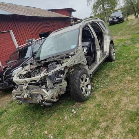 Eg har en 2011 Mitsubishi ASX 4x4 - 1,8 diesel, med skader på taket og rustet fremre travers, som snart skal hugges og selges i deler. Kilometerstand er 232.000km. Svart skinninteriør. 4wd funker.