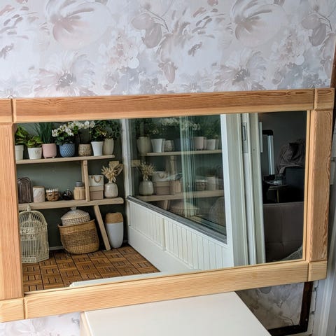 Helspeil i malt og pusset heltre furu - 59 cm bredt og 2 meter høyt.