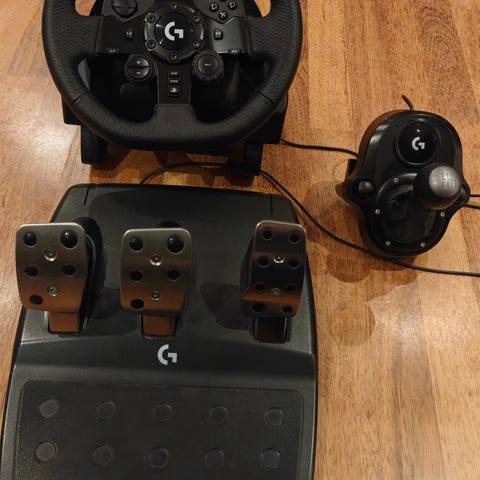 Logitech G923 Trueforce Racing Wheel og Pedaler for PlayStation. Inkluderer ratt og pedaler med metallfinish.