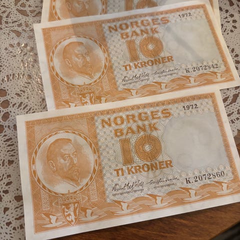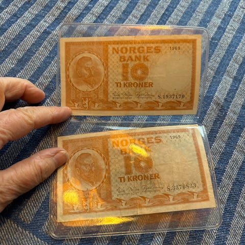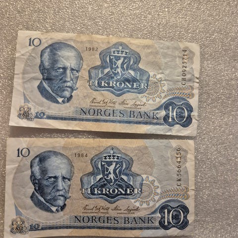 Norges Bank 10 Kroner Sedler 1966,68,69,79,79 og 84
