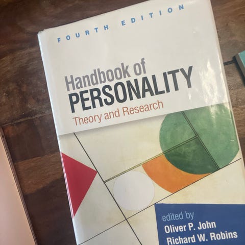 Selger «Handbook of Personality - Theory and Research» bok av Oliver P. John, Richard W. Robins og Lawrence A. Pervin. 3. utgave. ISBN 978-1-60918-059-1. Kjøpt som pensum på profesjonsstudiet i psykologi ved UIO. I fin stand, ingen markeringer. Det er lagt kontaktpapir utenpå boken for at den skal holde bedre.