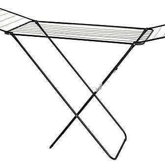 Høyt, sammenleggbart tørkestativ fra Clas Ohlson. 30 m tørkelengde, ca 3 vask. Med holdere til kleshengere. Det følger med 4 hjul. Mål utslått (L x B x H): 76 x 68 x 117,5–180 (justerbar høyde). Aldri brukt. Nypris 499 kr.