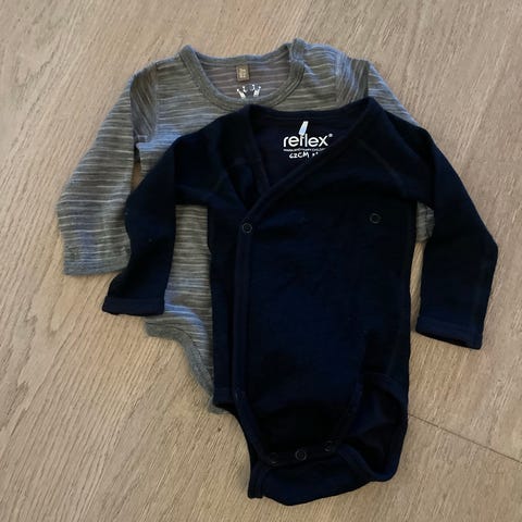 Hust & Claire body i størrelse 62 for barn. Laget av ullmateriale med flerfarget stripemønster. Passer for både gutter og jenter.