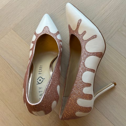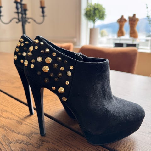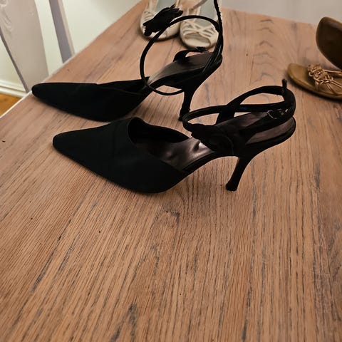 Svart Katy Perry hæler sko, brukte 2 ganger, størrelse 37, perfekt for fester, bryllup etc. Stoff er fløyel og skinn, hælhøyde 8,5 cm.