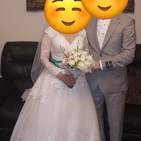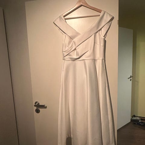 Da selger jeg den fine brudekjolen min. Brukt en dag. Str 36. Jeg er 160cm høy. Kosta ny 21 900,- håper noen andre får like stor glede av den som jeg hadde.