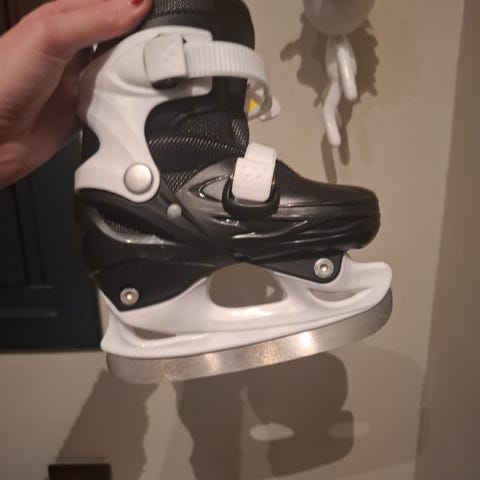 Graf Kid Adj. Ice Skate er en ishockeyskøyte for barn i størrelse 27-30. Skøyten har blå og svarte farger og er laget av plast og tekstilmaterialer. Den er designet for ishockey og har justerbar størrelse for å tilpasses barnets fot.