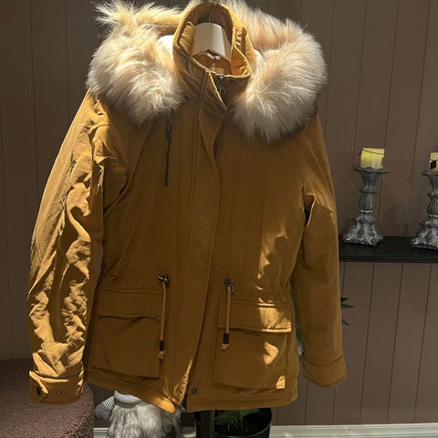 Mørkegrønn, størrelse small. Pent og en del brukt, i god stand.