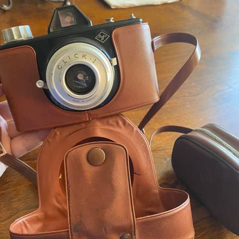 Agfa Isolette sammenleggbar kamera med etui.