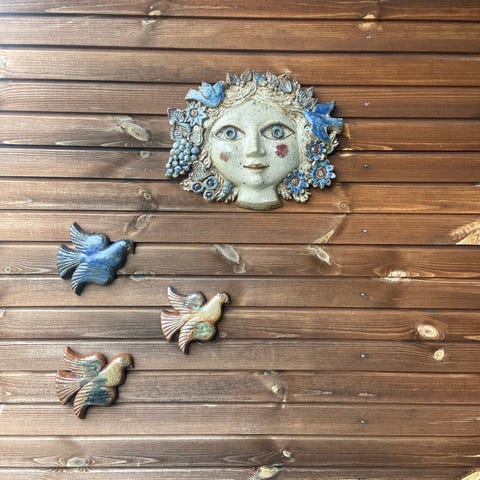 Gabriel Sverige retro keramikk bilde relief med blå sommerfugler brun rund A 150