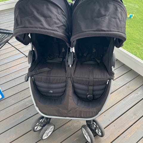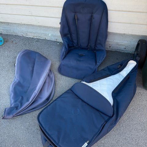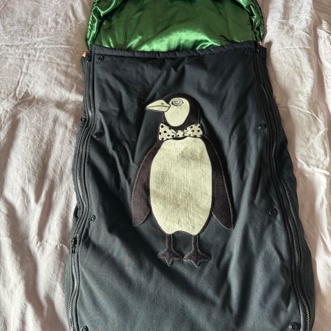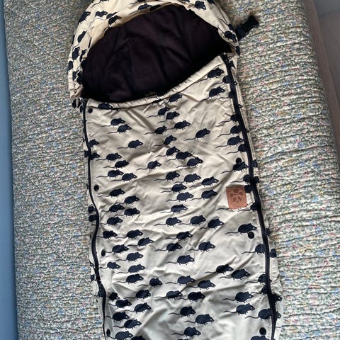 Vognpose til vår/høst (eller mild vinter). Foret med fleece. Noen skyggeflekker foran (se bilde 3). Forsterket med ekstra søm i den ene glidelåsen, som eller fungerer som den skal. (Se bilde)