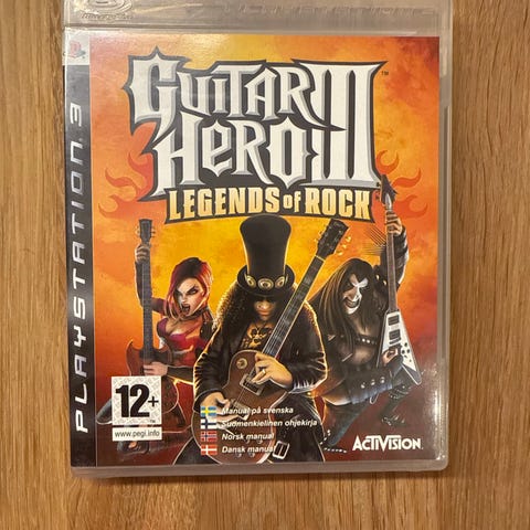 Activision Guitar Hero III Legends of Rock PlayStation 3 spill. Spill i musikk- og rytmesjangeren for PlayStation 3. Inkluderer spillplate og originalt deksel med instruksjonshefte. Egnet for aldersgruppen 12 år og oppover.