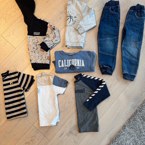 Klespakke med bare nye klær, i størrelse 110/116 selges samlet for 700,- Alt er nytt og ubrukt, med lappen på. Klærene passer best til vår/sommer/høst. Ulike merker som Reflex, NameIt, Cubus, Lindex, H&M, Luca&Lola m.fl..