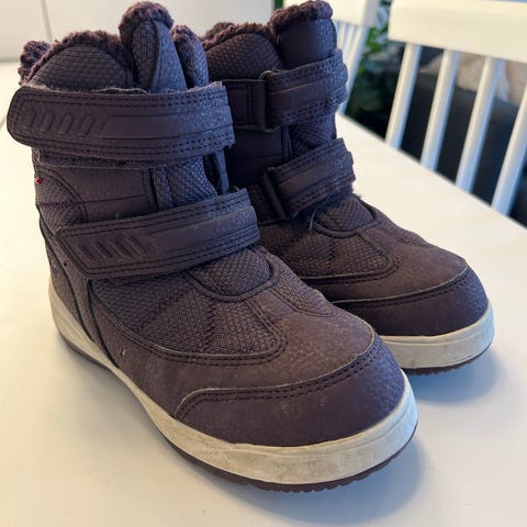 Lite brukt Viking vintersko i størrelse 30, rød farge. Skoene har borrelås og elastiske snører for enkel påkledning.