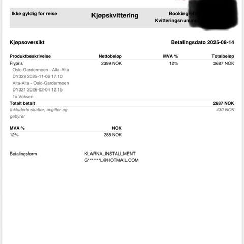 Norwegian Air Shuttle Flybillett Oslo til Berlin 16. januar 2026