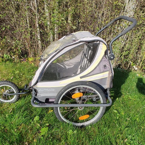 Burly dobbel sykkelveg / trillevogn med plass til to barn.