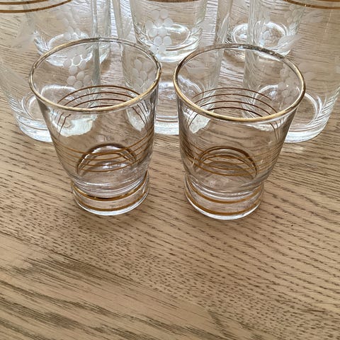 16 eldre glass selges. 4 små . 2 litt større, 4 av de mellomste og 6 store