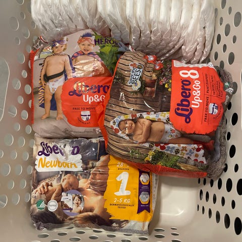 Gis bort til første som kan hente. Hadde en uåpnet pakke igjen etter at våre slutter med bleier.
