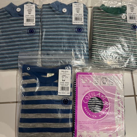 ⭐️Janus ulldress (type tynn ull), 2 bukser, 1 genser, 1 romper, 1 babypledd, 1 lue, 1 par votter og 1 par tøfler fra merke tova.