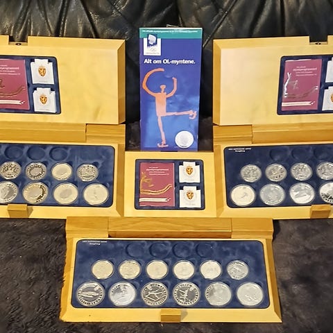 Alle sølvmyntene fra OL på Lillehammer i flott skrin av bjørk.