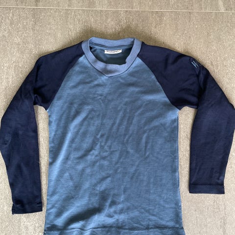 - Blå/grå genser. Bitteliten skade ytterst på erme. Se bilde.
