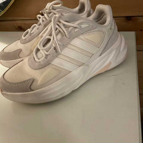 Adidas sneakers joggesko i størrelse 38. Skoene har en mørk farge og hvit såle. Designet for generell bruk.