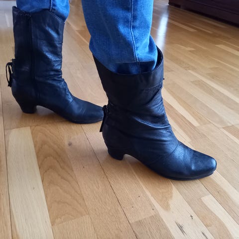 Sjelden mulighet!! Støvletter kjøpt for snart 20 år siden i en liten fancy skobutikk i Bygdøy alle. Jeg er ikke “ kul nok” til å bruke de så de har blitt liggende i et skap. Merke heter Keyte og tror det er Fransk. Men de er produsert i Italia og er i skinn. Jeg har satt på gummisåle av skomaker. De er str 38. Ingen bruksmerker da de er brukt kanskje to ganger. De er gode på foten.
