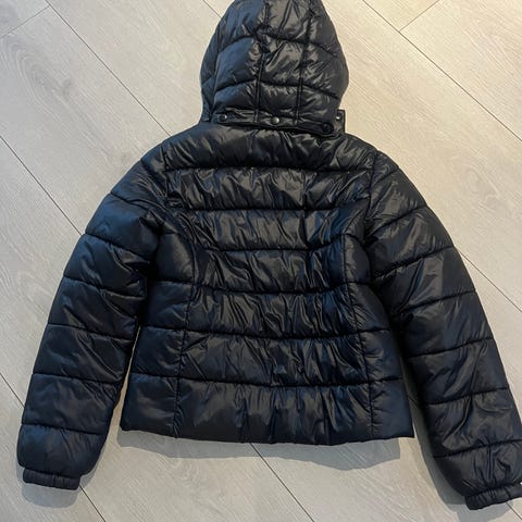Fin vattert jakke fra Gina tricot i svart farge. Pels på hetten.