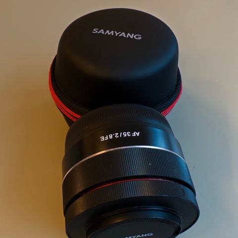 Selger Samyang AF 35mm f/1.8 for Sony FE-mount i svært god stand.