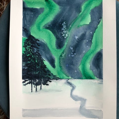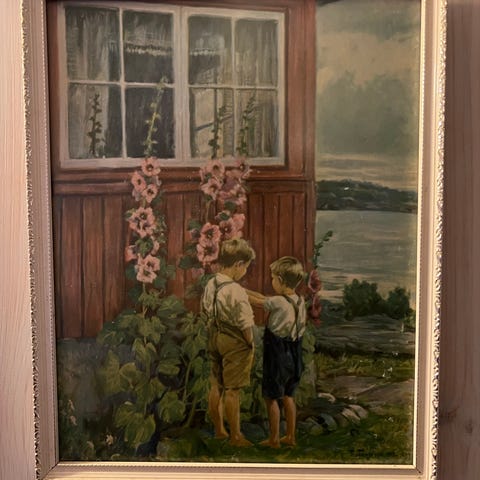 Maleri kvinne med fugl