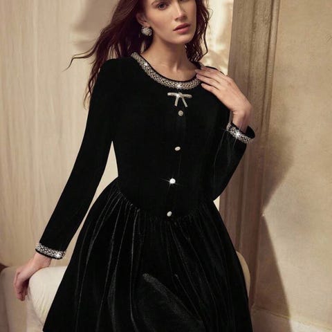 Passformen har en peplum-stil med en innsydd midje som blusser ut nederst