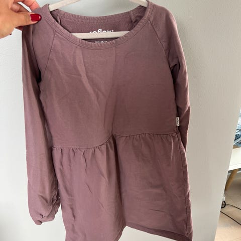 Myk og behagelig kjole fra H&M i dyp burgunderfarge. Langermet modell med rund hals og lett utsvingt skjørt. Komfortabel passform, fin både til hverdag og pent bruk. Størrelse på lapp: 134-140 (8-10 år). Pent brukt, hel og fin uten hull eller flekker.