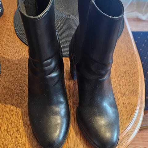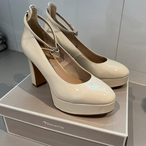 Tamaris finsko med hæler i størrelse 38, svart farge. Skoene har lukket tå og ankelstropp. Kjøpt rett før jul til 799,-. Ble ikke å bruke de, men prøvd på med strømper. Veldig myke og gode sko i velur, ikke for høy hæl så komfortable å gå med. Kvittering medfølger om ønskelig.