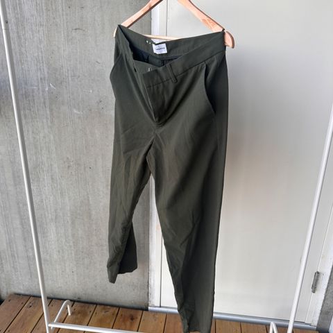 Selger ubrukt bukse fra Lindbergh. Den er bare prøvd på, men desverre tatt av lappen. Inneholder viskose og akryl og har fin koksgrå farge og oppbretskant nede. Mål fra linning og helt ned er 95 cm. To stikklommer i front og dekorlommer bak