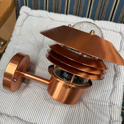 Har 11 vegglys jeg hadde tenkt å ha utendørs. Ingen er brukt og er helt nye i esken