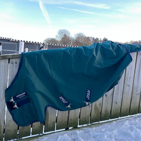 Horseware Amigo regndekken 100 gram i størrelsen 100 med hals selges.