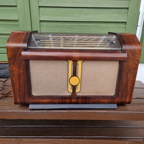 Ny pris 15.02. Selger en gammel reiseradio av merket Radione R2, den er fra ca 1938/39. Jeg har aldri satt strøm på den så om den virker er usikkert, sett litt på hva verdi er og er litt usikker på Ebay ligger det nå 2 stk for salg, en til ca 6-7000 og en til 17000 som virker langt for mye. Kom gjerne med bud. Har funnet skjema for den som evt trenger det.