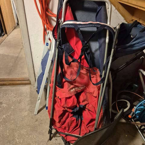 Pulken er fullt utstyrt med trekk-sele og vindskjerm.
