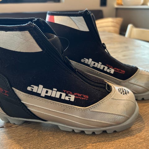 Fisher og Alpina langrennstøvler tilbarn selges. Du ser jo at de er brukt, men de har noen sesonger igjen.