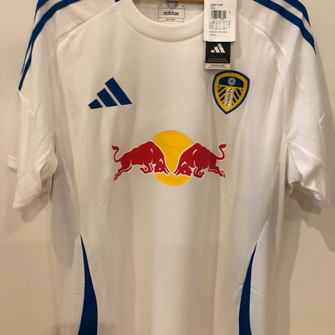 Leeds United fotballdrakt i hvit farge, størrelse M. Drakten har grå detaljer på ermer og hals, samt sponsorlogo 32Red på brystet. Egnet for bruk som sportsklær eller som samlerobjekt.